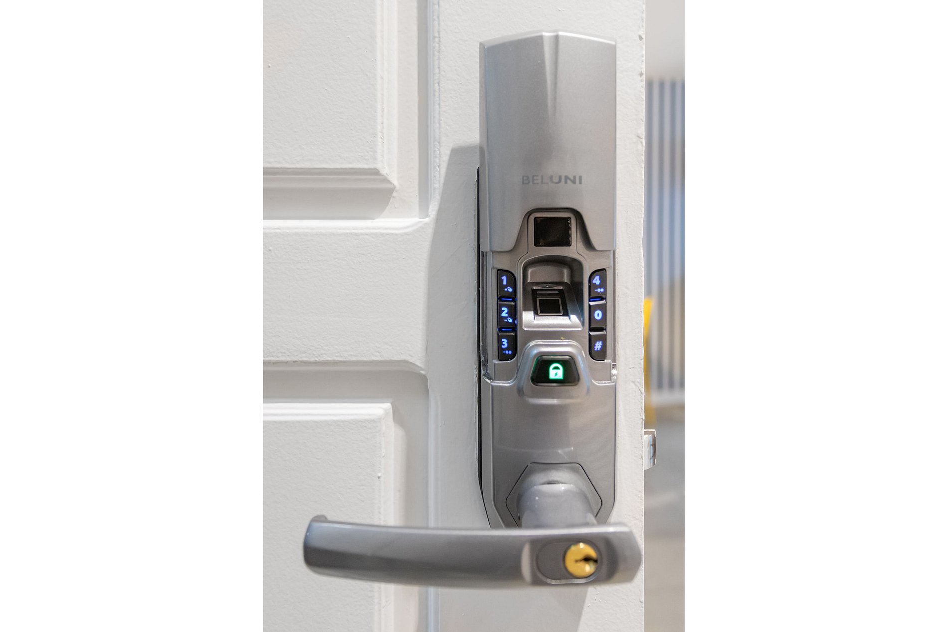 - Fechadura eletrônica com entrada por código/senha (dispensa chaves)